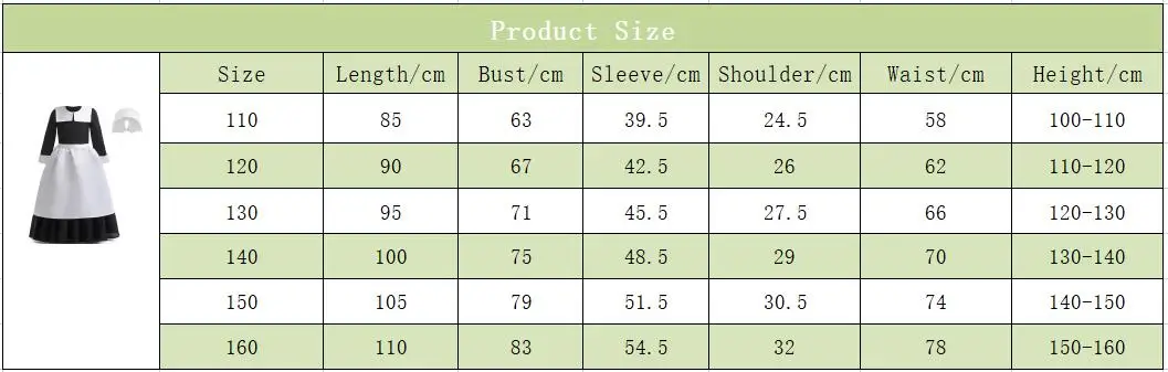 Available Sizes: This cosplay costume is available in various sizes to accommodate children from 4 to 12 years and beyond. Please refer to the size chart for the best fit.